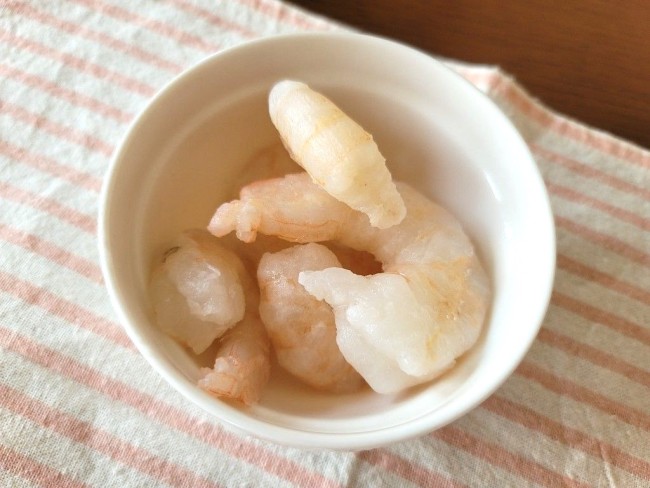 (1)冷凍エビは解凍しておきます。