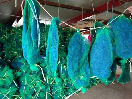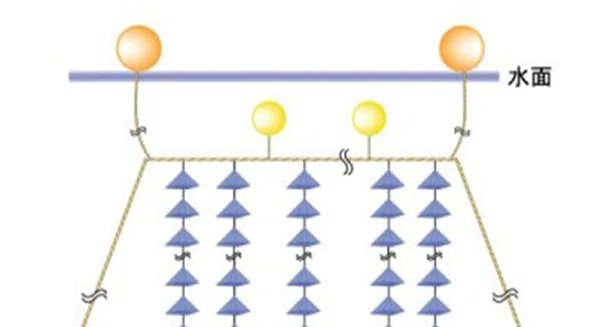 この赤ちゃんを”ちょうちん”と呼ばれる採苗器(ネット状になった袋)に付着させ採取します。