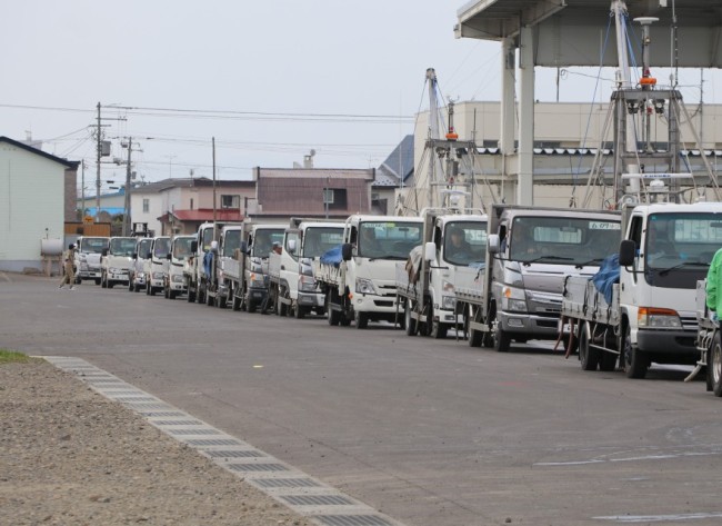 この期間湧別漁港は、早朝から沢山の稚貝を載せたトラックで活気づきます。