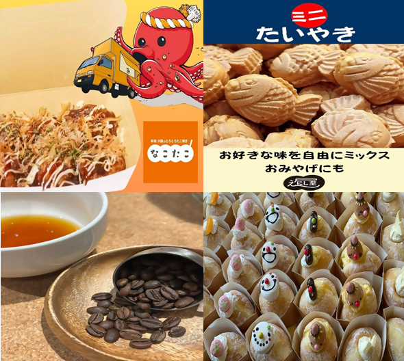 ④寒いからこそ美味!「飲食販売」(たこやき、コーヒー、たい焼き、生ドーナツ)