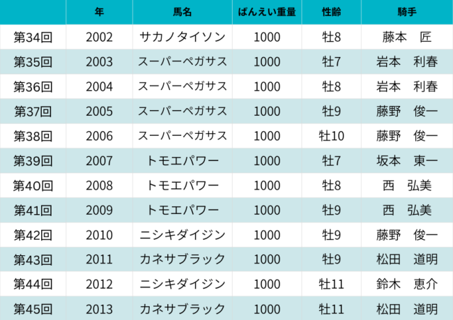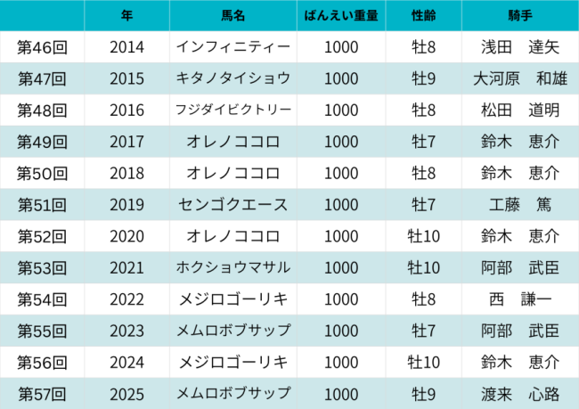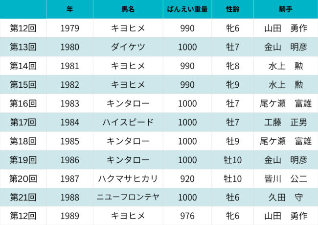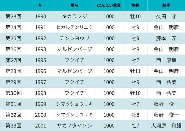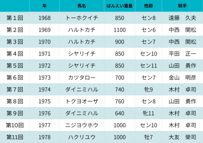 最後に、ばんえい記念の歴代優勝馬リストをご紹介。