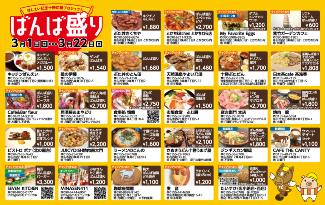 ばんえい記念はもとより、ちょっと違った楽しみもあります。2026年3月1日(日)~3月22日(日)の期間、十勝管内の飲食店で『ばんば盛り』の企画が行われ、参加店ではばん馬にちなんだ“盛り”や“映え”を意識したメニューが提供されます。さらに、ばんえい記念開催週には帯広競馬場内にキッチンカーが多数出店予定で、こちらでも十勝の誇る“食”を存分に味わえます。